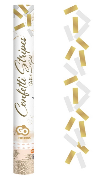 Vystřelovací konfety 40cm - STRIPES, mix zlatá/bílá
