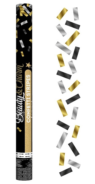 Vystřelovací konfety 60cm - Stripes, mix zlaté/stříbrné/černé