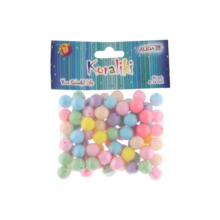 Korálky kulaté 14mm, 80ks - pastelové mix
