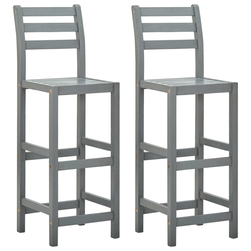 Barové Stoličky 2 Ks Šedé Masivní Akáciové Dřevo - Hnědá / 2