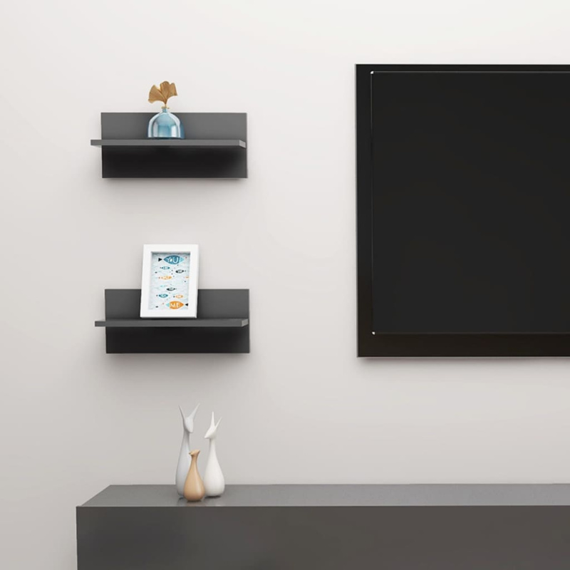 Nástěnné Police 2 Ks 50 X 15 X 50 Cm Dřevotříska - šedá s vysokým leskem