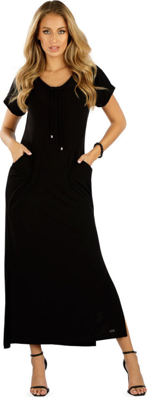 Dámské šaty dlouhé s krátkým rukávem 5g013 černá litex l