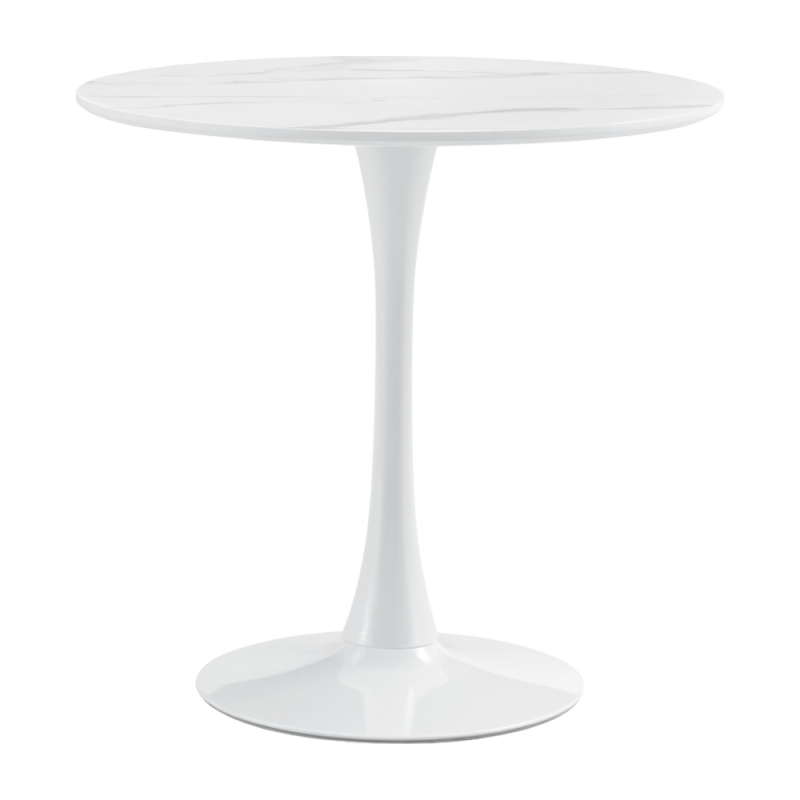 Jídelní stůl, světlý mramor/bílá, průměr 80 cm, LORIAN