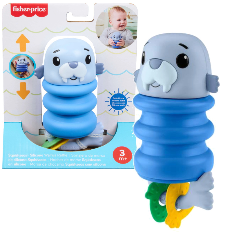 Smyslová chrastítko pro miminka s tuleněm a silikonovou pružinkou FISHER-PRICE