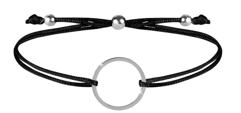Troli Šňůrkový náramek s kruhem černá/ocelová