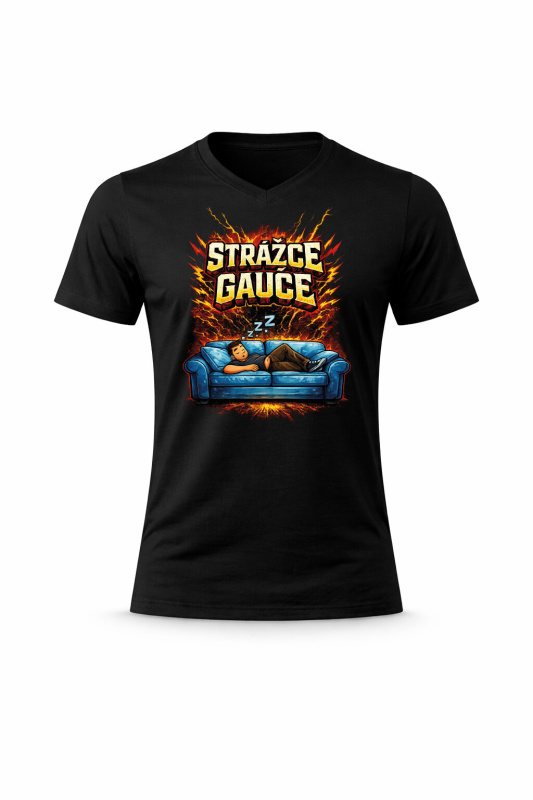 Pánské bavlněné tričko s potiskem - STRÁŽCE GAUČE - černé Velikost: 3XL