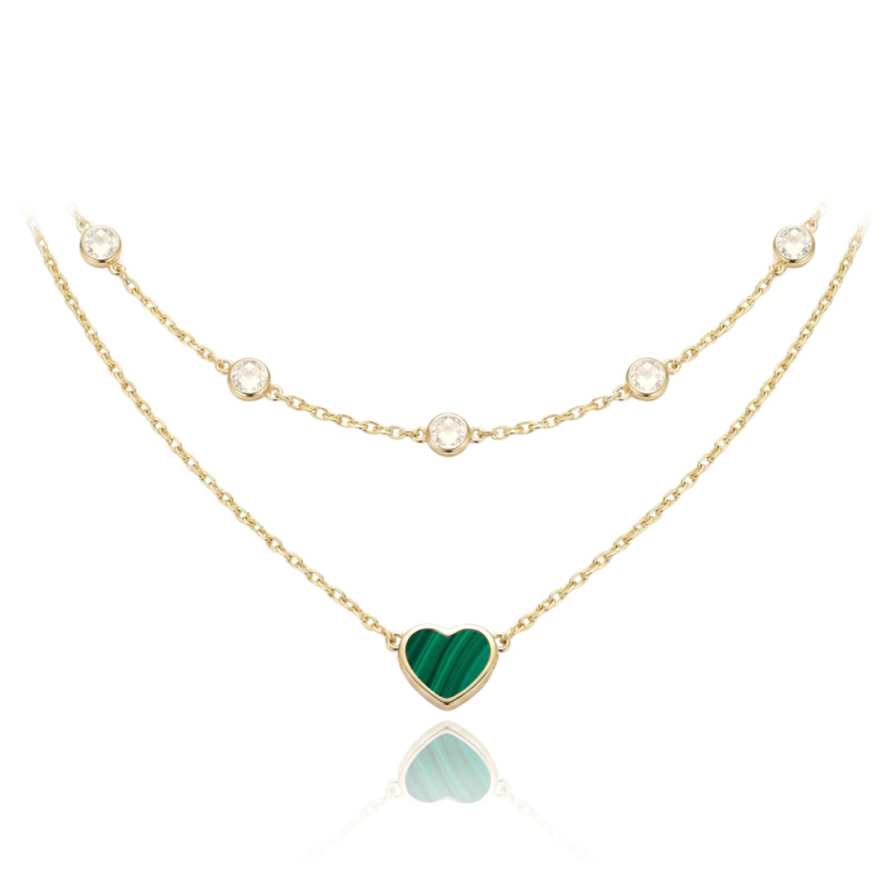 MINET Zlatý náramek srdíčko se zeleným malachitem a bílými zirkony Au 585/1000