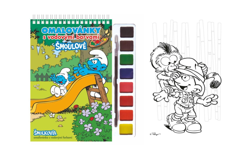 Omalovánky s vodovými barvami a štětcem Šmoulové
