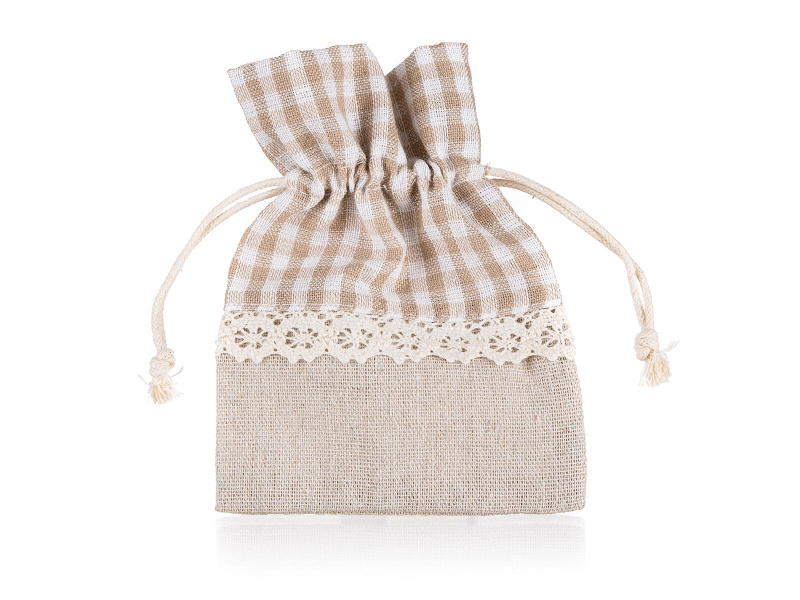 Dekorační bavlněný pytlík se světlou hnědobílou kostkou 10 × 13 cm