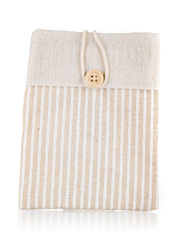 Dekorativní bavlněný pytlík Nature s pruhy, světle hnědý 10,5 × 14 cm