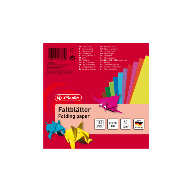 Barevné papíry Herlitz 20 x 20 cm, 100 listů, 10 barev, 60 g/m2