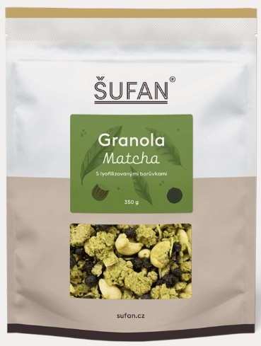 Šufan Granola 350 g - matcha s lyofilizovanými borůvkami