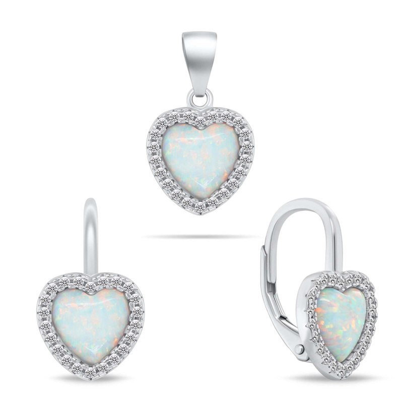 Brilio Silver Elegantní stříbrný set s opály SET299W (náušnice, přívěsek)