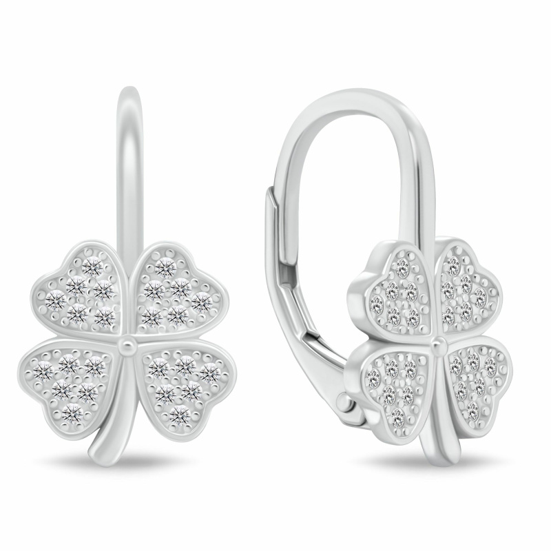 Brilio Silver Visací stříbrné náušnice Čtyřlístek se zirkony EA1252W