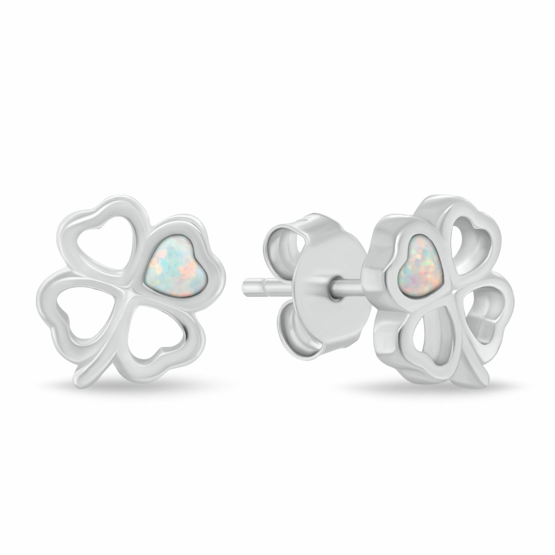 Brilio Silver Stříbrné náušnice Čtyřlístek s bílým opálem EA1253W