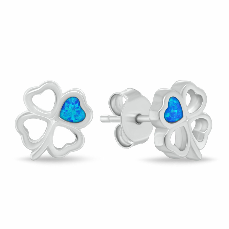 Brilio Silver Stříbrné náušnice Čtyřlístek s modrým opálem EA1253WB