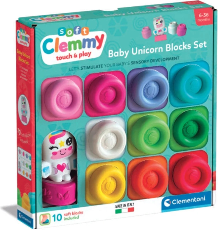 Měkké kostky SOFT CLEMMY 10 ks + figurka jednorožce