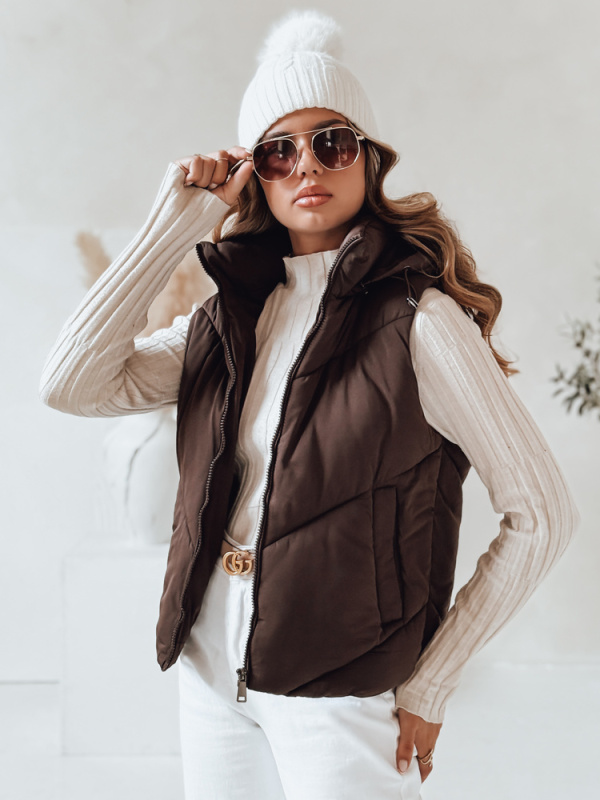 Kamizelka damska pikowana LIKEHUGS brązowa Dstreet