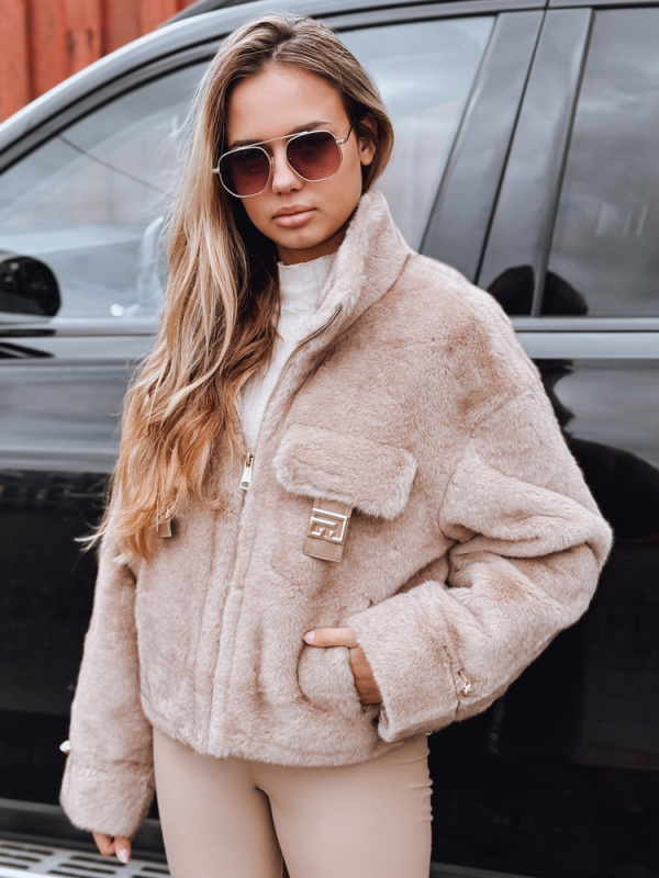 Kurtka damska zimowa NORINA pikowana z futerkiem beżowa Dstreet