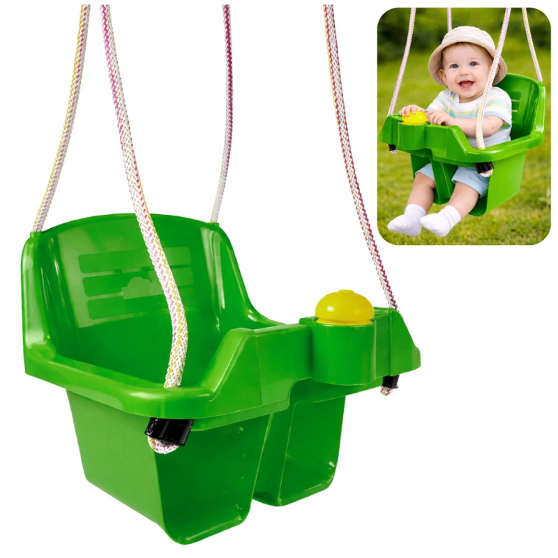 Zelená dětská kyvadlová houpačka s bezpečnostním sedákem