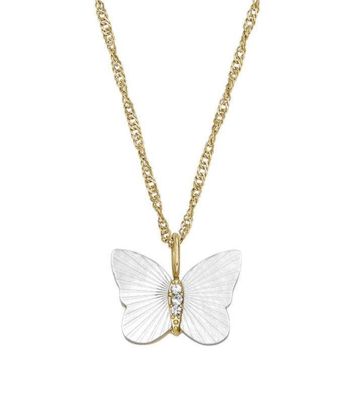 Fossil Elegantní pozlacený náhrdelník s krystaly Motýl JF04920710
