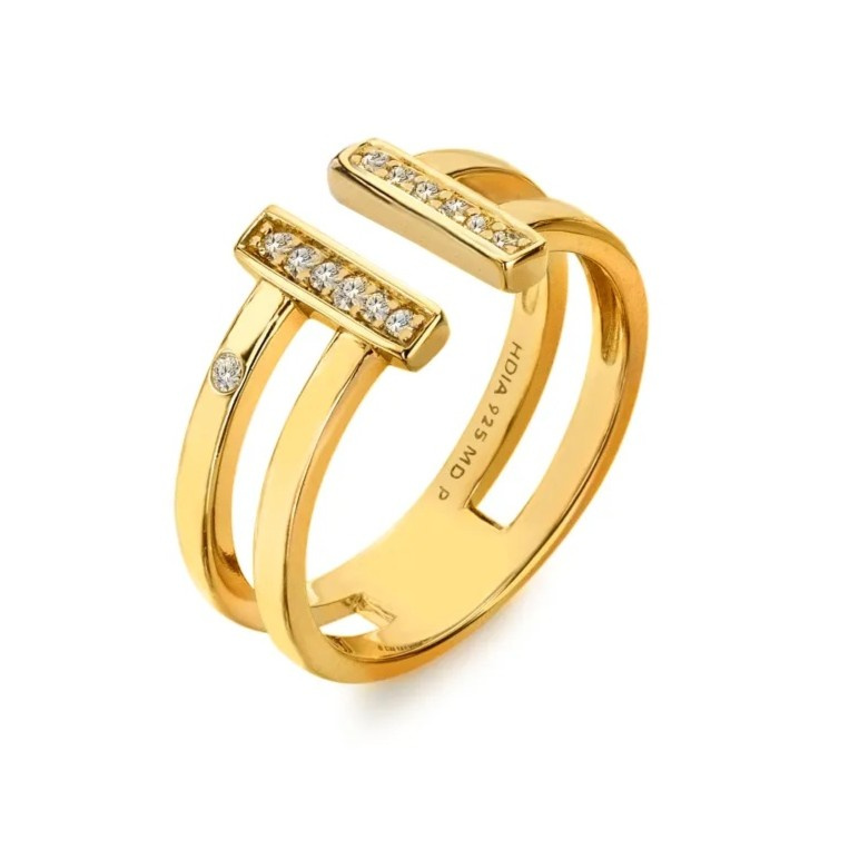 Hot Diamonds Pozlacený stříbrný prsten s diamantem Parellel DR308 55 mm