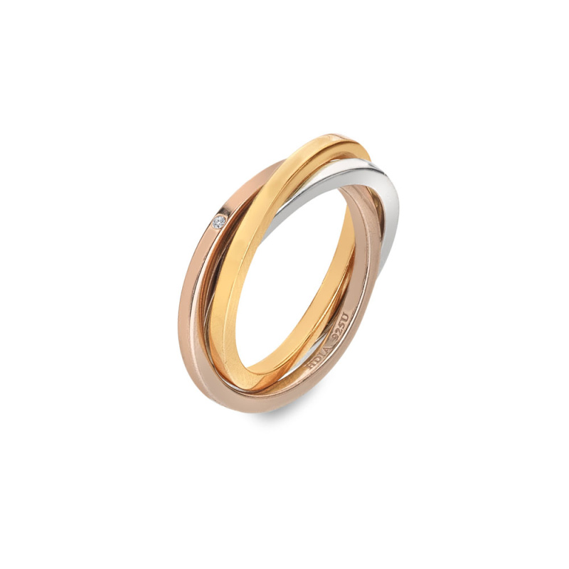 Hot Diamonds Trojitý pozlacený stříbrný prsten s pravým diamantem Trio DR297 55 mm