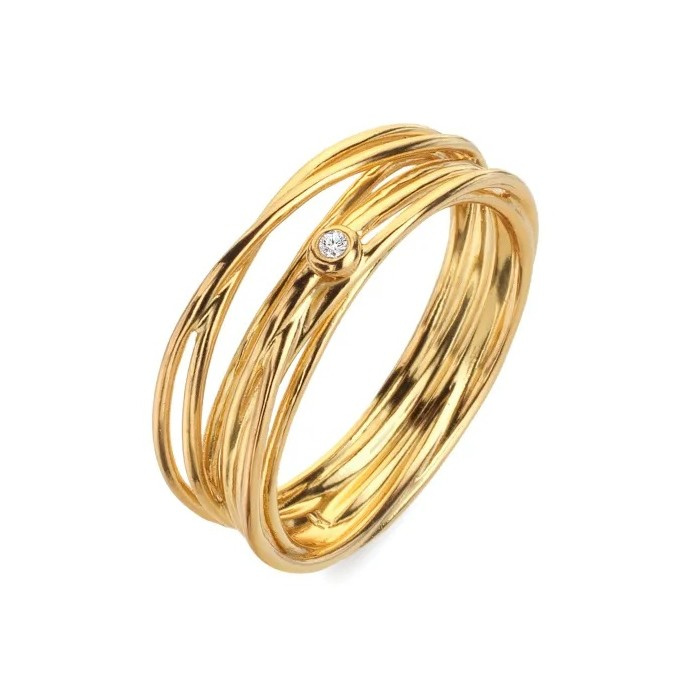 Hot Diamonds Pozlacený vlnitý prsten s diamantem Fiji DR319 51 mm