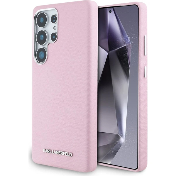 Karl Lagerfeld PU Saffiano Metal Logo and Frame Zadní Kryt pro Samsung Galaxy S25 Ultra Pink