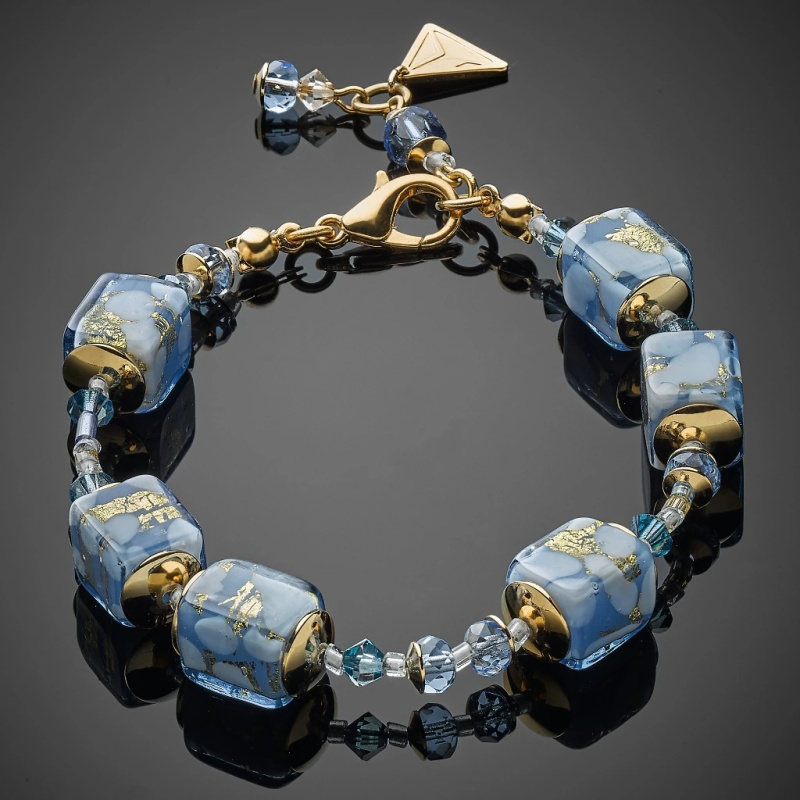 Lampglas Unikátní náramek Icy Treasure s 24kt zlatem v perle Lampglas BSA41