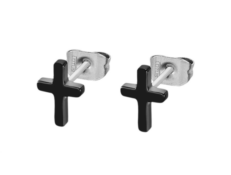 Lotus Style Černé ocelové náušnice Křížek LS2227-4/1