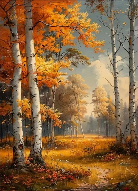 diamantové malování podzim mezi břízami 30 × 40 cm