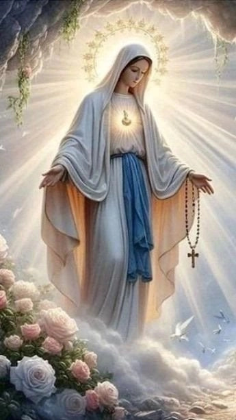 diamantové malování svatá matka boží s růžencem 80 × 40 cm