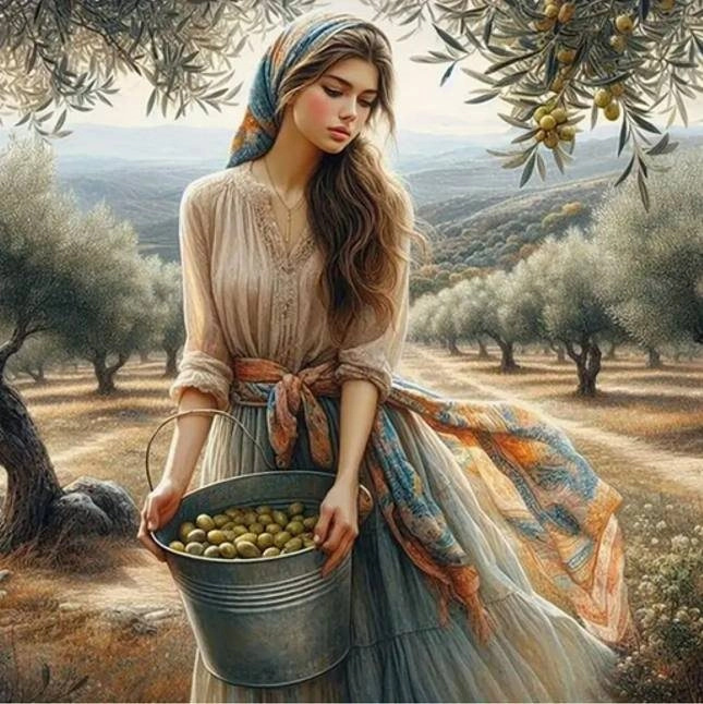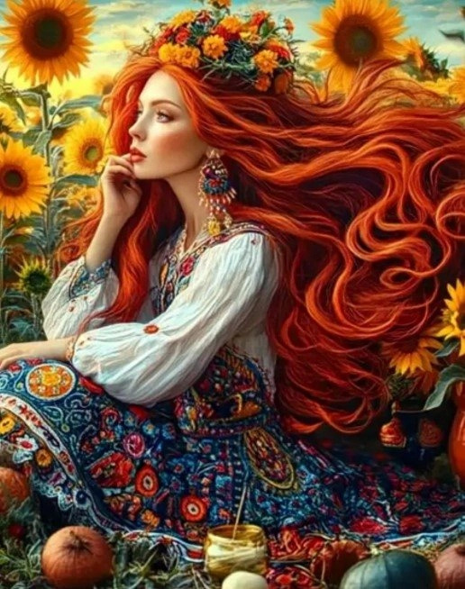 diamantové malování ukrajinská žena s košíkem 30 × 40 cm