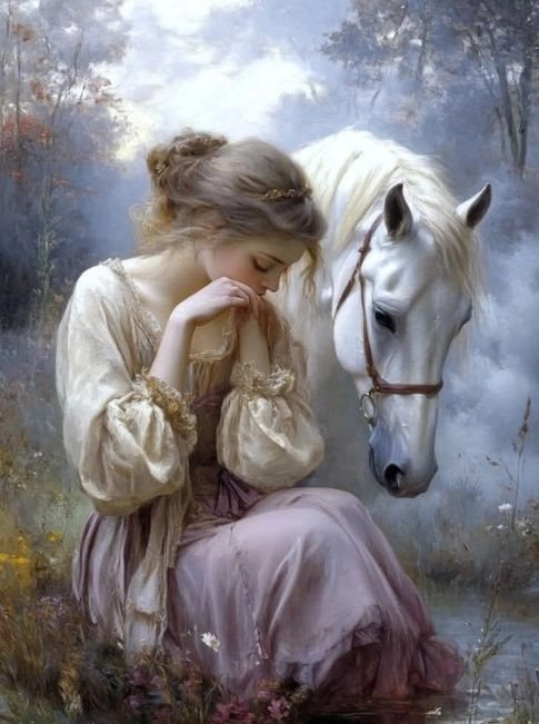 diamantové malování dívka s koněm 30 × 40 cm