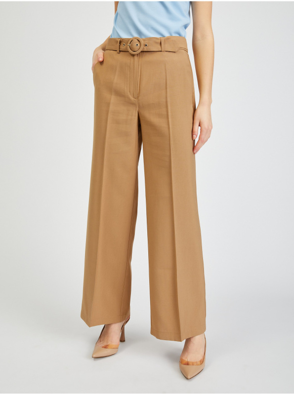 Orsay Hnědé dámské široké kalhoty s páskem - Dámské