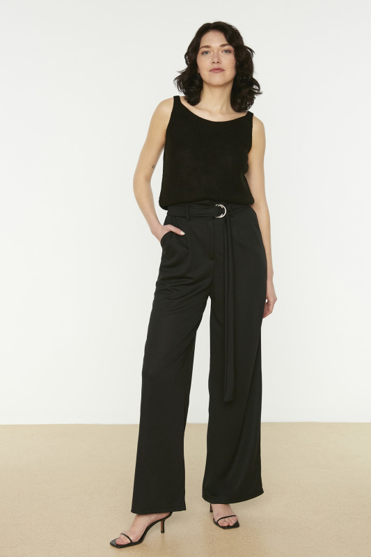 Trendyol Black Snap Detailní Loose Jogger Tlusté pletené tepláky