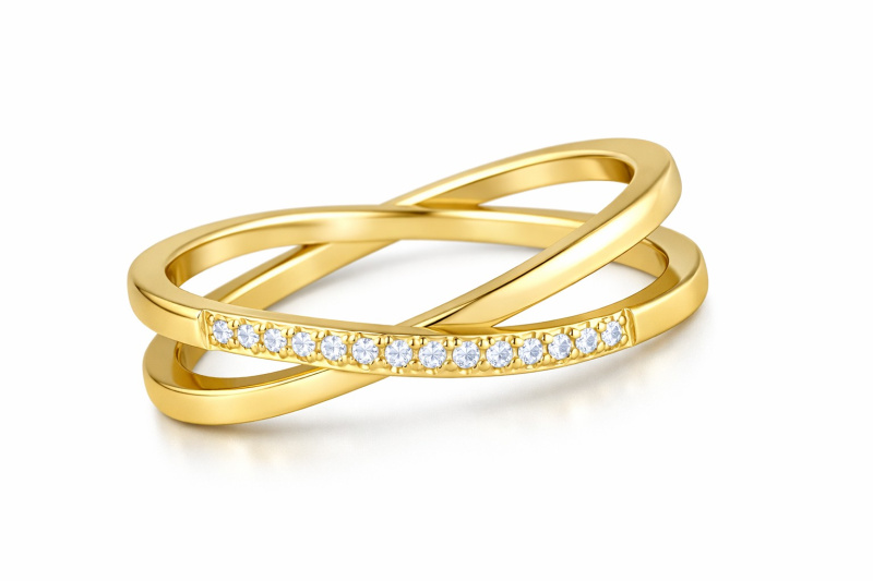 Troli Pozlacený dvojitý prsten z oceli s čirými zirkony Gold 60 mm