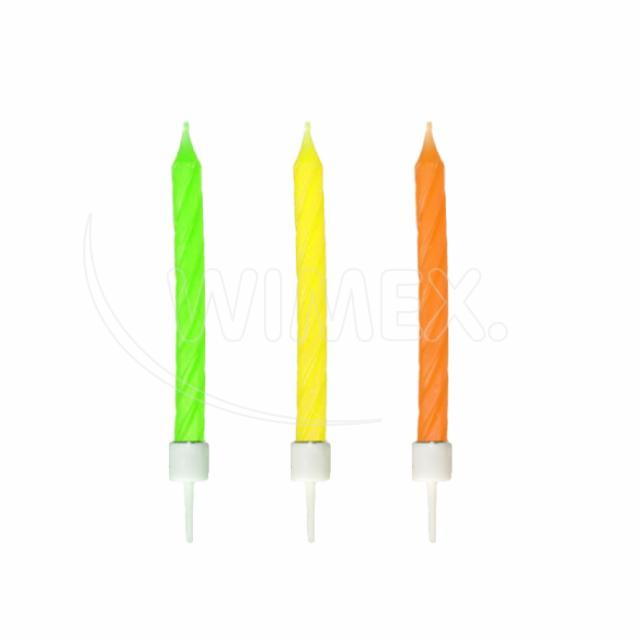 Narozeninové svíčky neon se stojánkem 60mm, 12ks