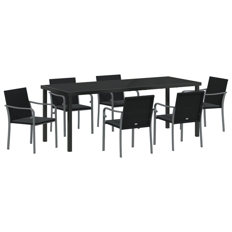 7Dílná Zahradní Jídelní Souprava S Polštáři - Černý Polyratan