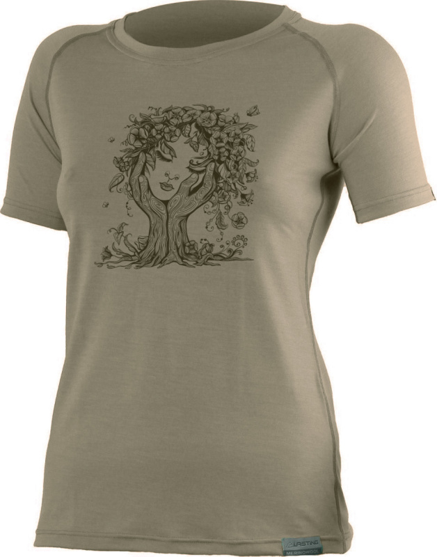 Dámské merino triko LASTING Flora hnědé Velikost: L