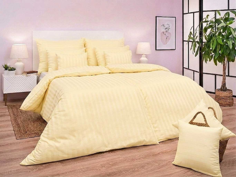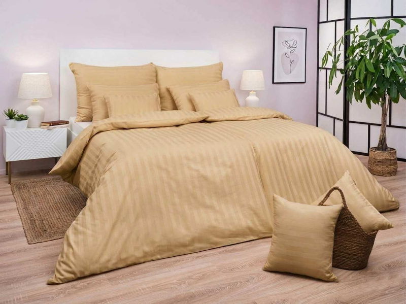 PREM INTERNTIONAL Povlečení atlas grádl proužek 2 cm šampaň 140x200, 70x90 cm flap