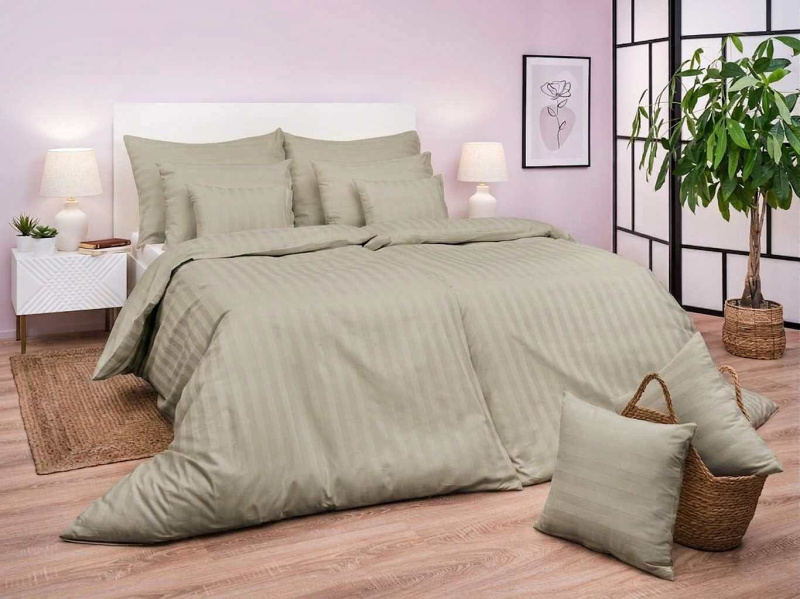 PREM INTERNTIONAL Povlečení atlas grádl proužek 2 cm béžový 140x200, 70x90 cm flap