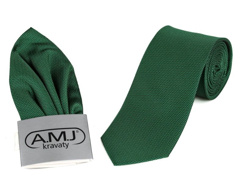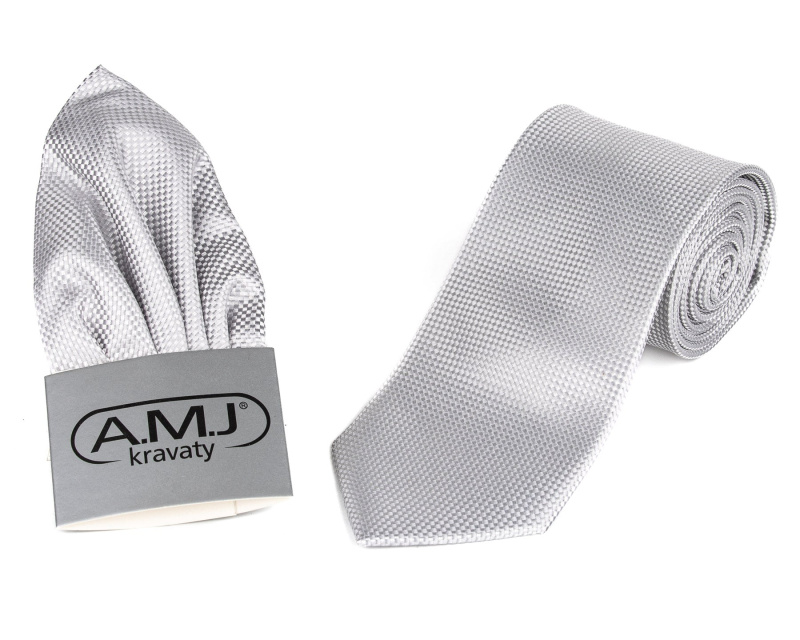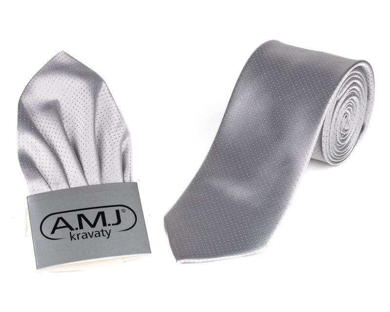 AMJ Kravata pánská s kapesníčkem AMJ tečkovaná, KK0548, šedá