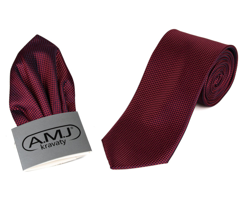 AMJ Kravata pánská s kapesníčkem AMJ kostičkovaná, KK0553, bordó