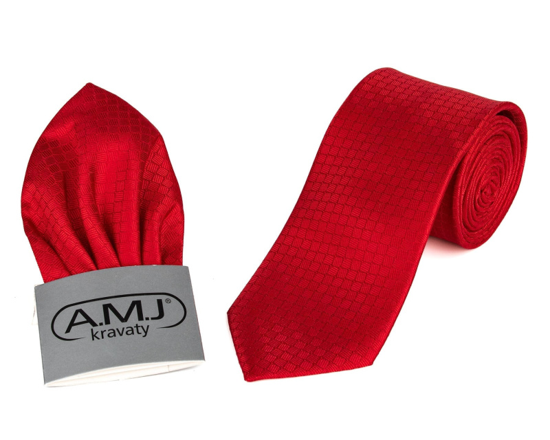 AMJ Kravata pánská s kapesníčkem AMJ kostičkovaná, KK0549, červená