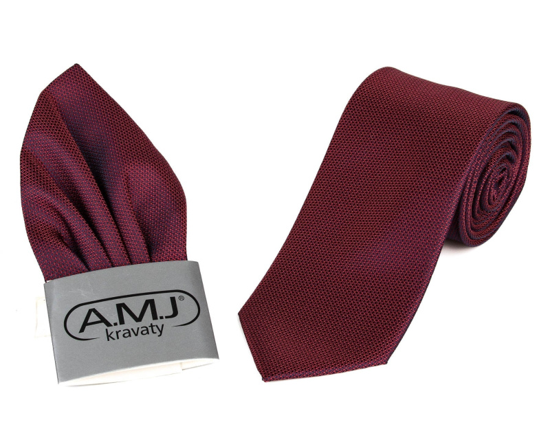 AMJ Kravata pánská s kapesníčkem AMJ kostičkovaná, KK0547, vínová