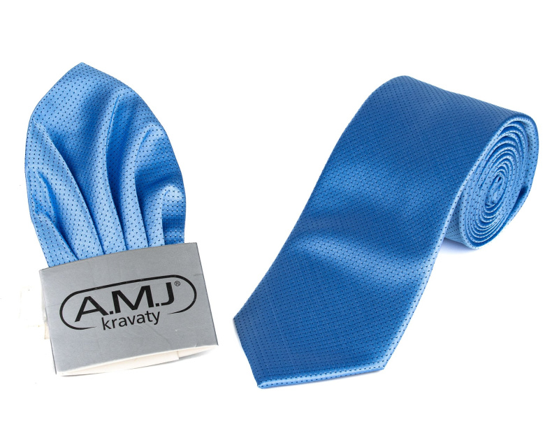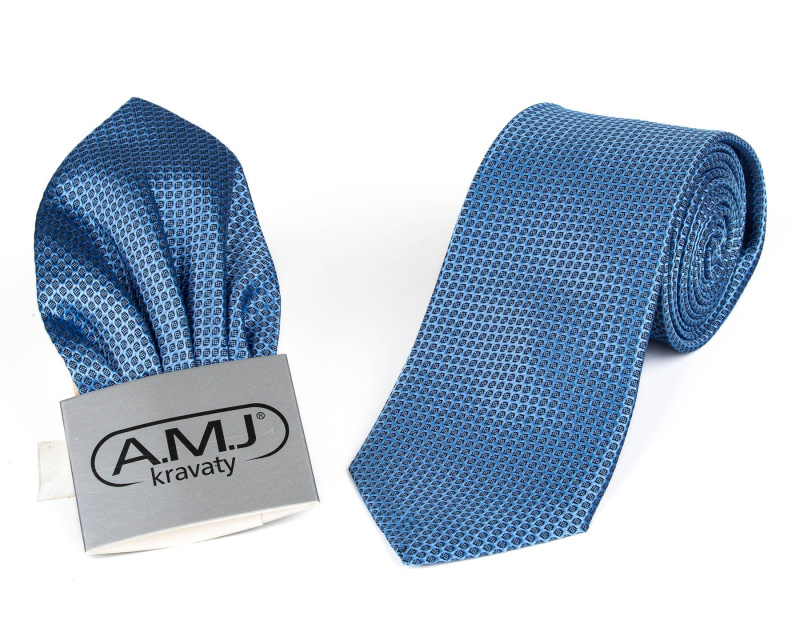 AMJ Kravata pánská s kapesníčkem AMJ kostičkovaná, KK0564, modrá