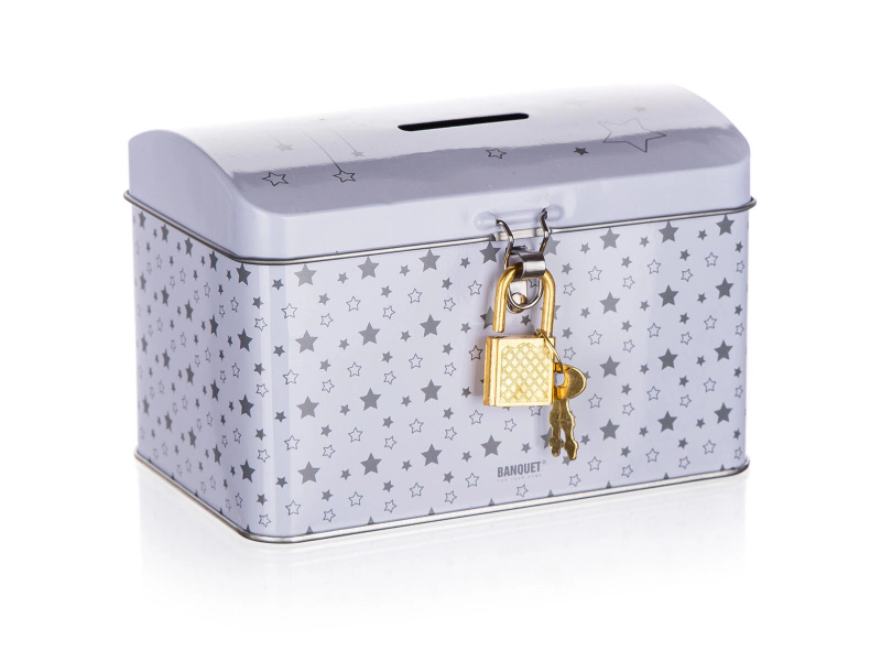 Banquet Plechovka kasička truhla 4KIDS 12,8x8,4x8,4cm bílá