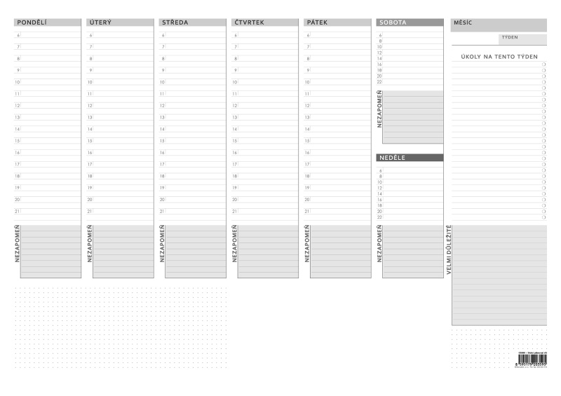 Stolní plánovač A3 - týdenní mapa 30 listů antistres